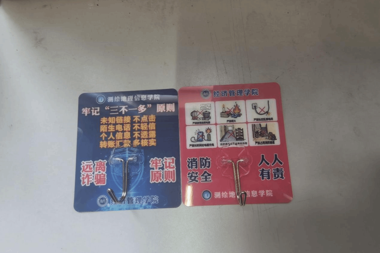 活动中,学院还向宿舍每一位同学发放了印有消防与反诈要点的宣传粘钩,工作人员结合粘钩及卡片内容,为同学们进行了现场讲解与安全科普,实现了宣传载体与教育引导的有机结合。